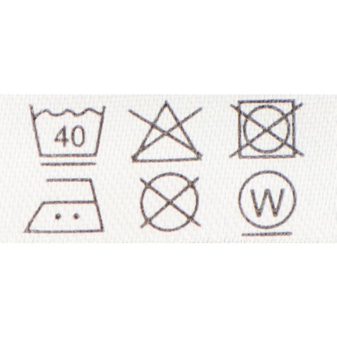 注意事項:●標示內容遵照台灣法規之規定。●請使用洗衣網。●請使用不含螢光增白劑的洗劑。●請勿熨燙釦子部分。●熨燙請使用墊布。●請勿熨燙裝飾品部分。