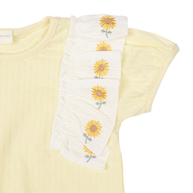 短袖T恤-袖子刺繡-黃色