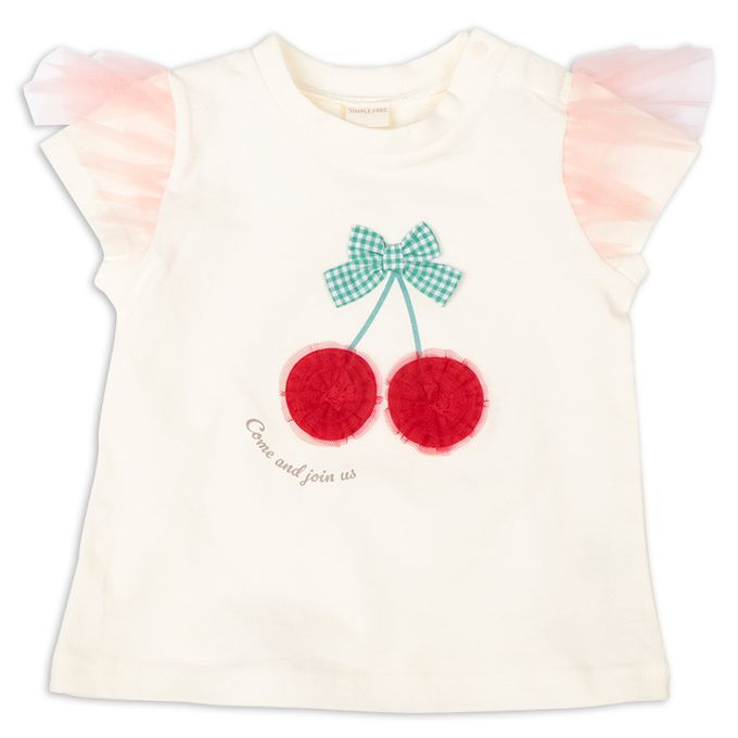 幼兒短袖上衣-薄紗袖立體造型-米白色
