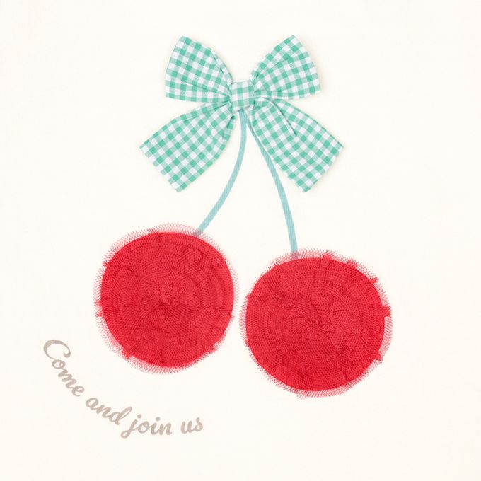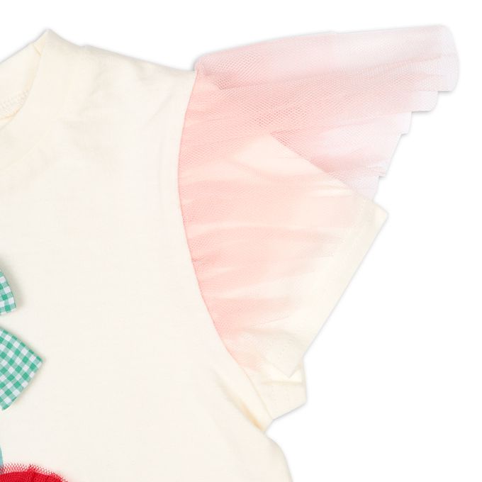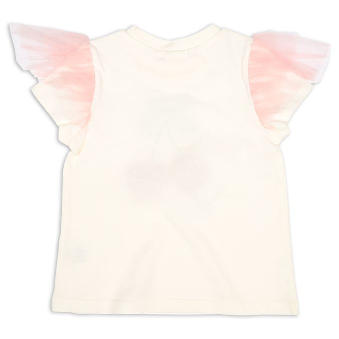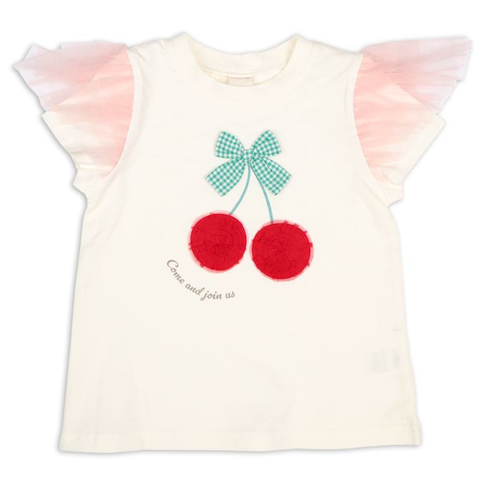 兒童短袖上衣-薄紗袖立體造型-米白色