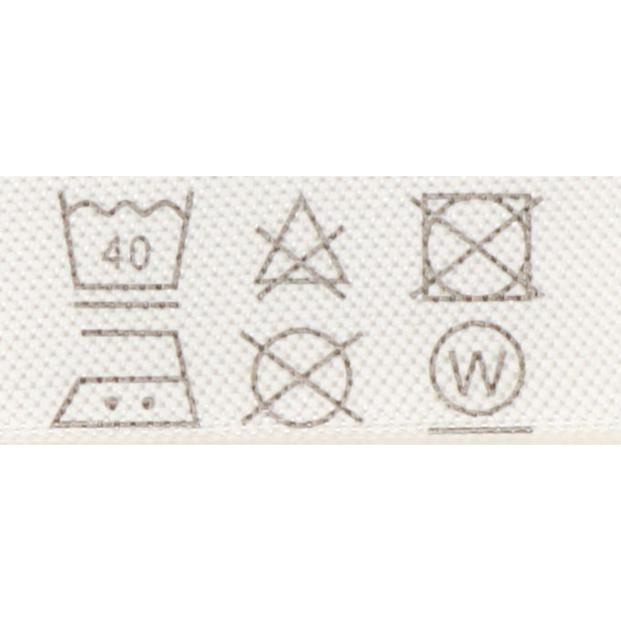 注意事項:●標示內容遵照台灣法規之規定。●請使用洗衣網。●請使用不含螢光增白劑的洗劑。●請勿熨燙裝飾品部分。●請勿熨燙印花部分。