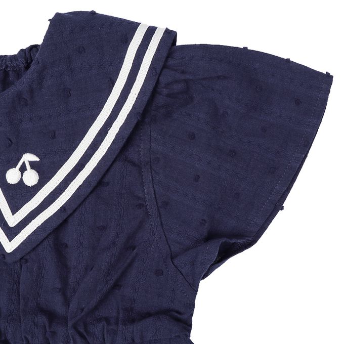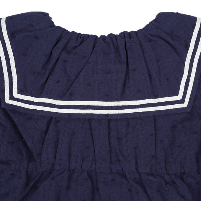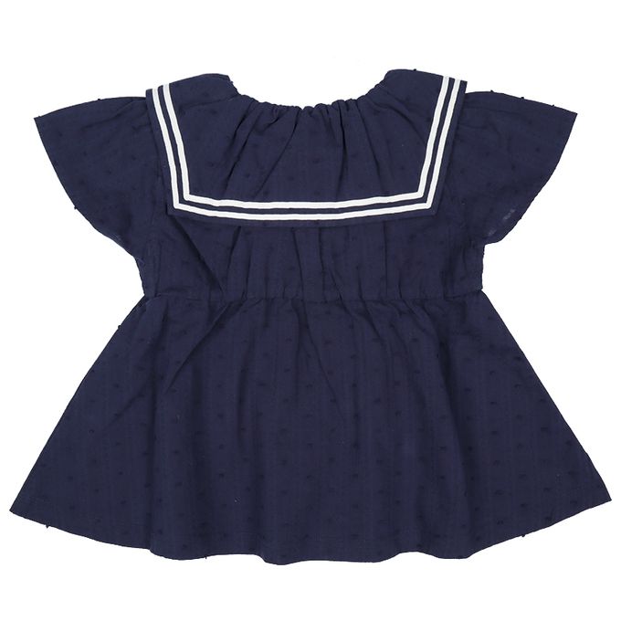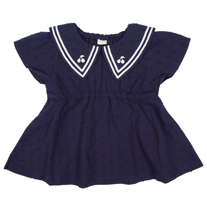 兒童短袖水手風上衣-平織-深藍色