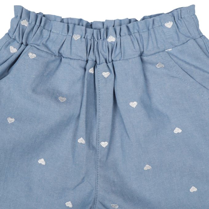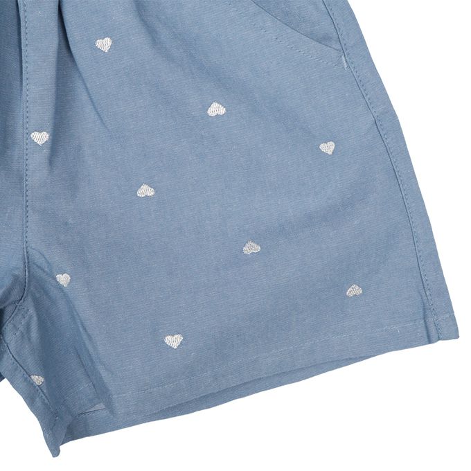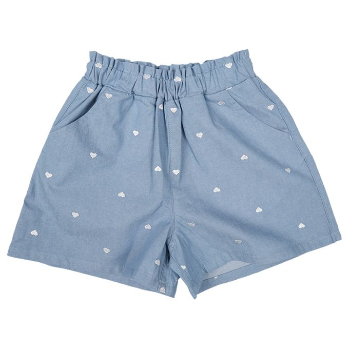 akachan honpo - 平織短褲-滿版刺繡-深藍色
