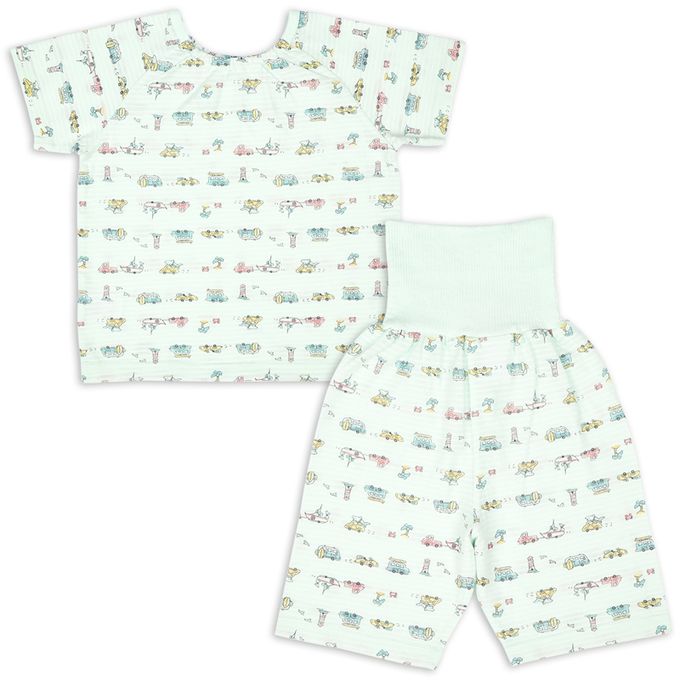akachan honpo - 短袖家居服 穿衣練習套頭式-汽車-淺綠色