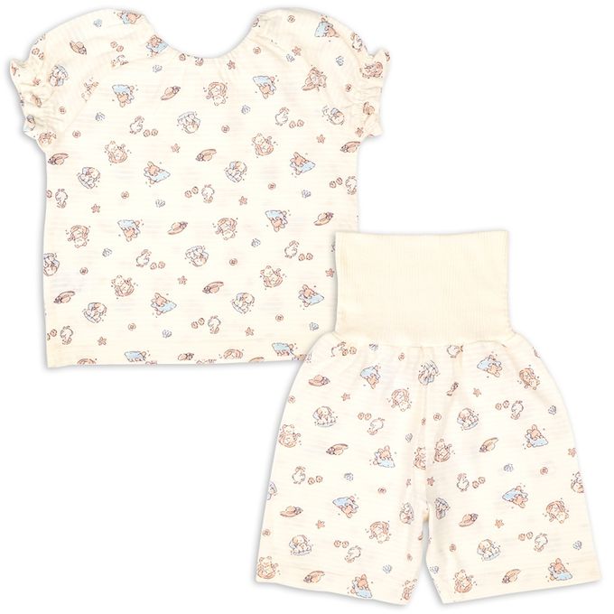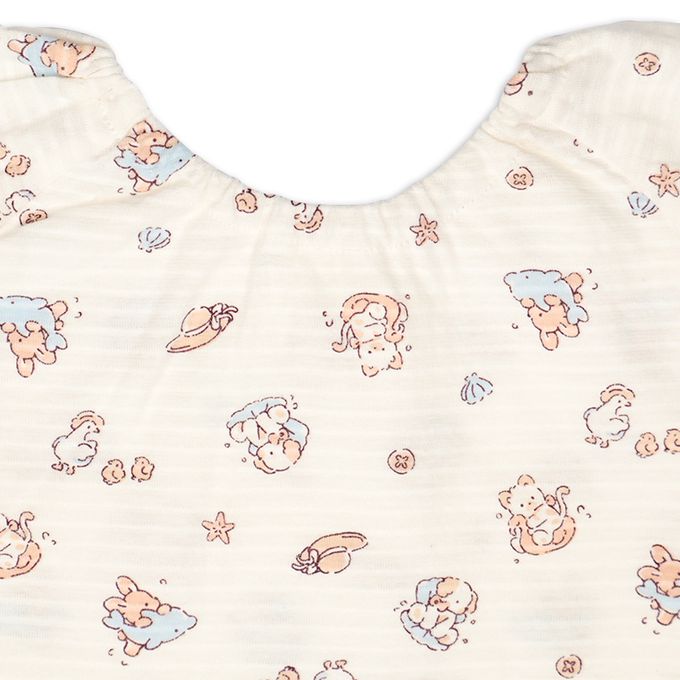 akachan honpo - 短袖家居服 穿衣練習套頭式-動物-米白色