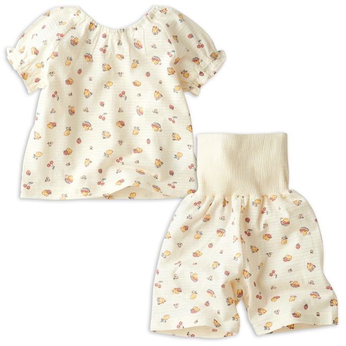 akachan honpo - 短袖家居服 穿衣練習套頭式-水果-奶油色