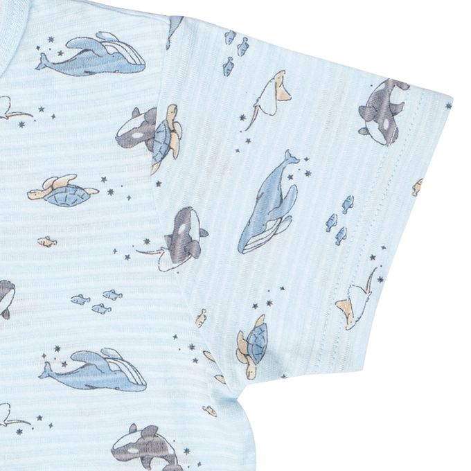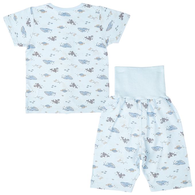 akachan honpo - 短袖家居服 穿衣練習前開式-鯨魚-淺藍色
