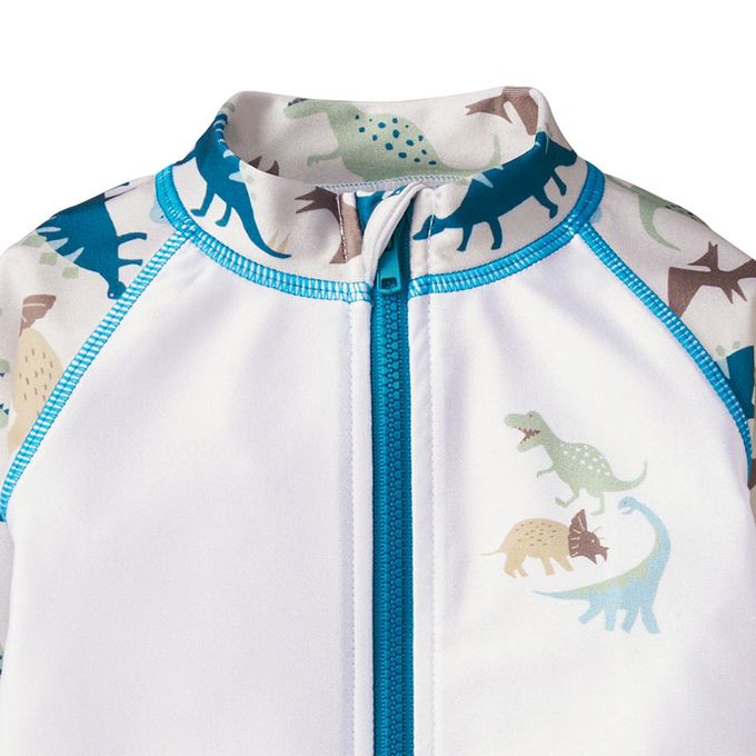讓幼童更加享受夏日時光,推出恐龍圖案的防曬泳衣囉。
