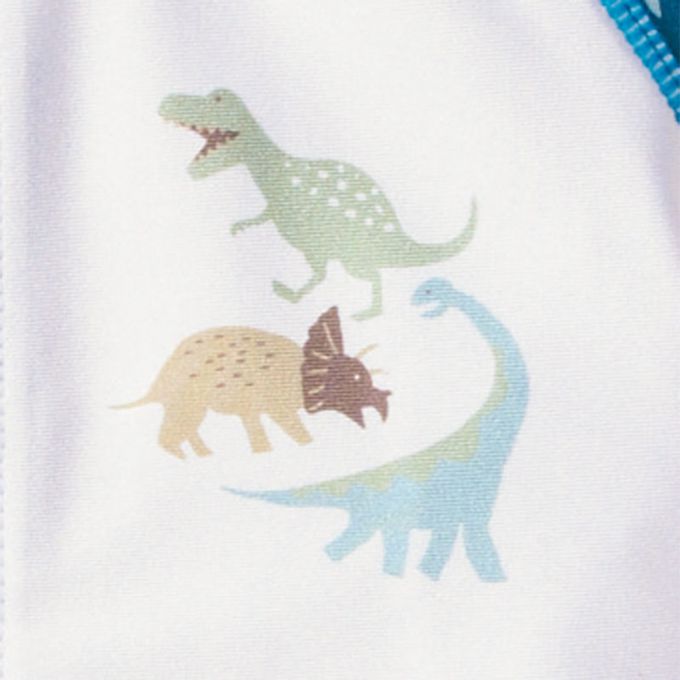讓幼童更加享受夏日時光,推出恐龍圖案的防曬泳衣囉。