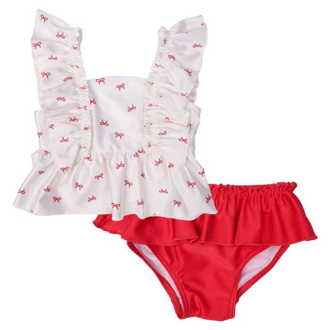 讓幼童更加享受夏日時光,推出蝴蝶結圖案的兩件式泳衣囉。