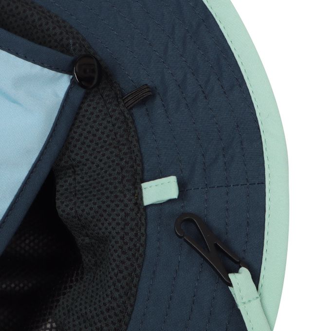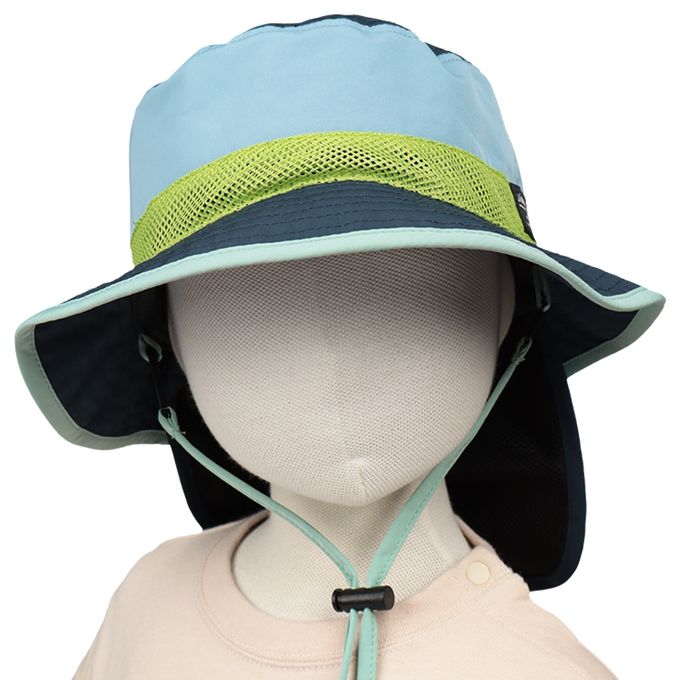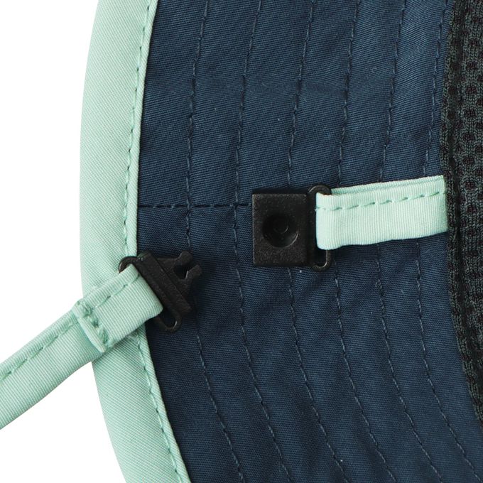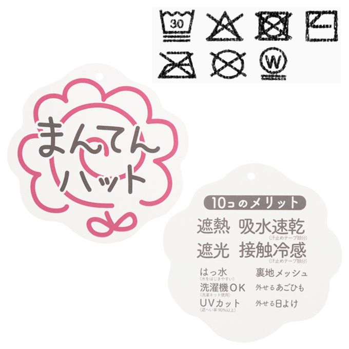 具備遮熱、遮光、吸水速乾(吸汗帶部分)、接觸涼感、(吸汗帶部分)、防潑水、可機洗(使用洗衣袋)、抗UV、內裡為網眼、可拆式下巴固定繩、可拆式遮陽布等功能。