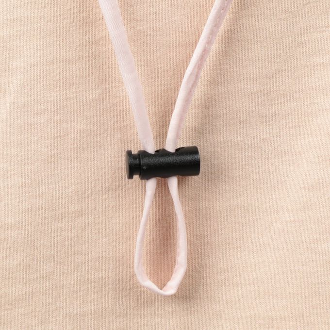 下巴有固定繩可防止被風等吹落。固定繩一側受到強力拉扯時會自動鬆開,另一側為掛鉤扣。