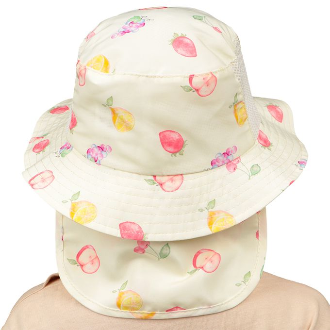 akachan honpo - 漁夫帽-附防曬遮陽布 動物印花-淺卡其色