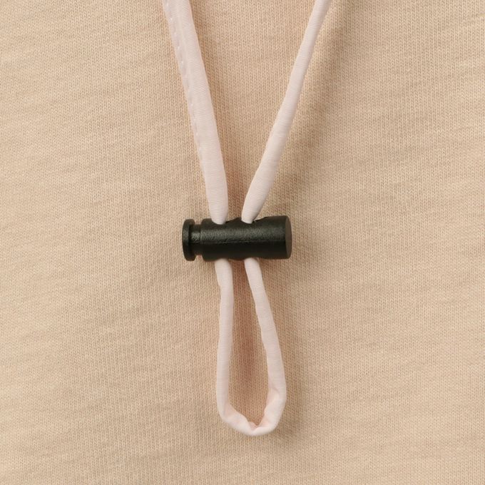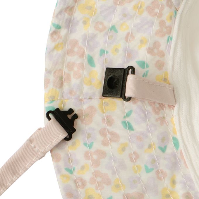 下巴有固定繩可防止被風等吹落。固定繩一側受到強力拉扯時會自動鬆開,另一側為掛鉤扣。