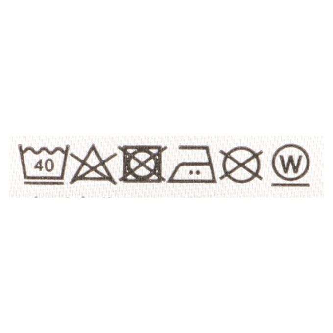 注意事項:●標示內容遵照台灣法規之規定。●請使用不含螢光增白劑的洗劑。●請勿熨燙釦子部分。