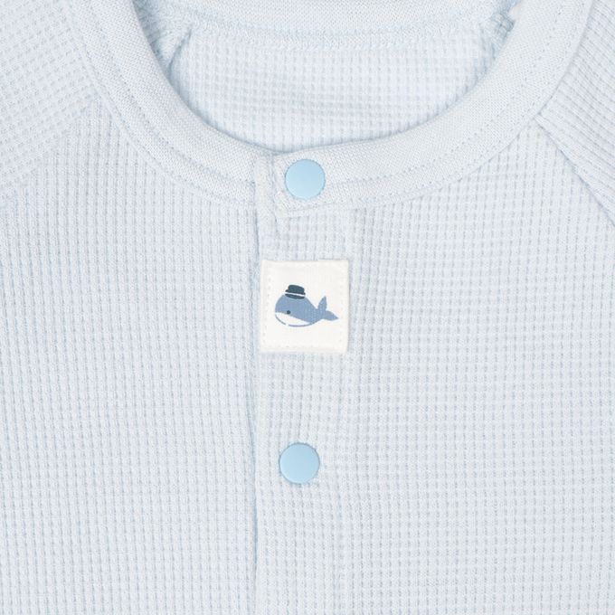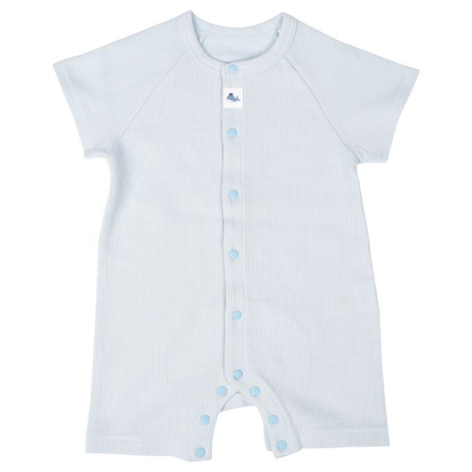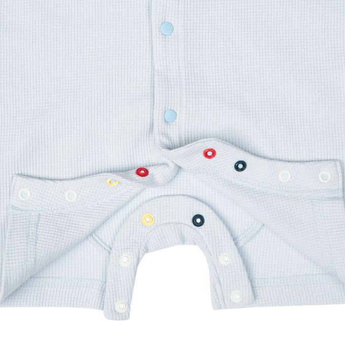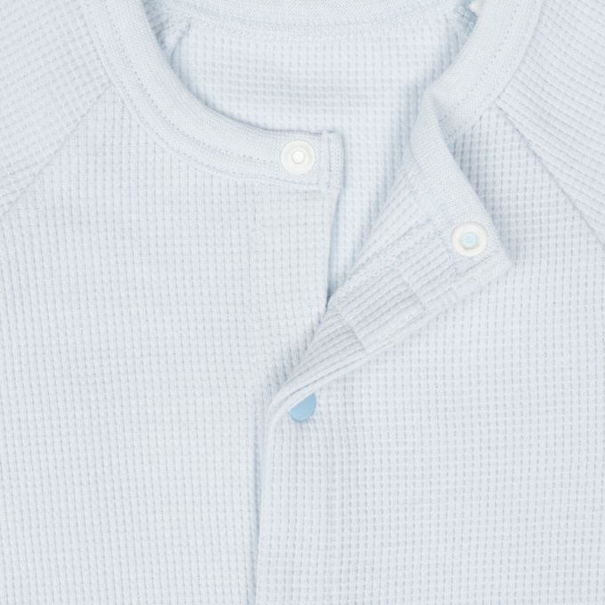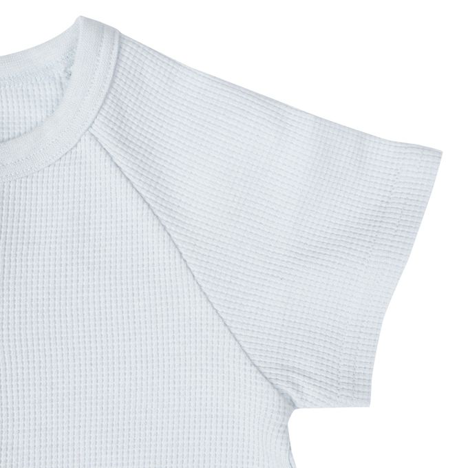 短袖連身衣-華夫格羅紋抽針針織布-淺藍色