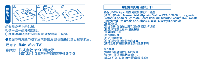 品名:水99% Super 新生兒屁屁濕紙巾一般型3包入