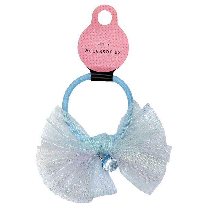 髮圈-吊飾網眼蝴蝶結-藍色