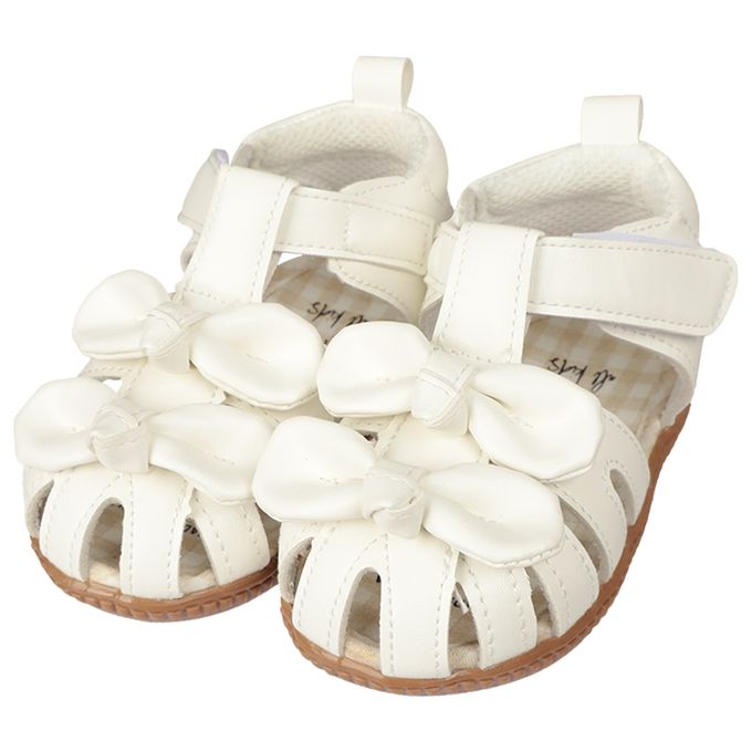 鞋面上有2個可愛蝴蝶結裝飾的涼鞋