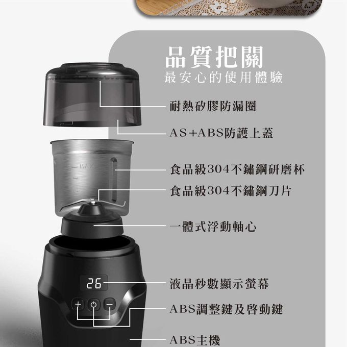 一鍵操作, 輕鬆磨豆, 無需持續按壓上蓋