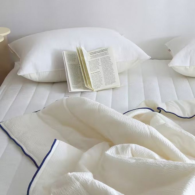 * 韓國手工製作/韓國原料* 具防蟎抗過敏護理功能,搭配 Huvis 填充棉抗蟎率達 94.7%* 添加環保填充 Tencel 天絲棉花,有助於睡眠* 涼爽柔軟的雙面材質,雪波紋+純棉* 外層 >> 超級涼爽雪波紋泡泡紗* 內層 >> 柔軟60支純棉