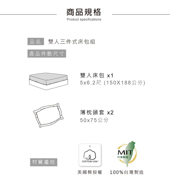 品名:雙人床包枕套組 300織美國棉 純色刺繡