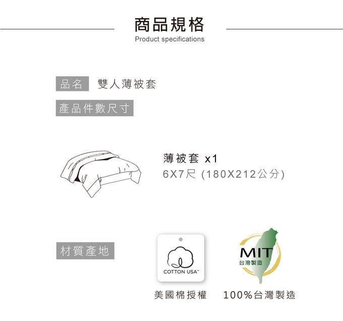 品名:雙人薄被套 300織美國棉 純色刺繡
