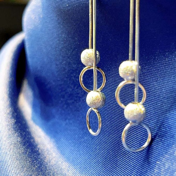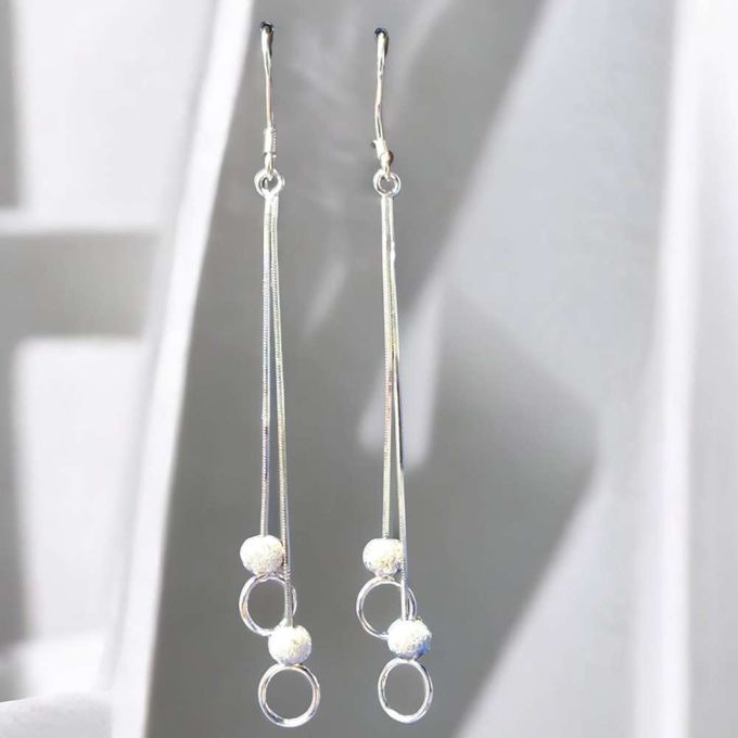 圓環吊墜流蘇垂墜式銀色耳環耳飾耳針 (F SIZE)