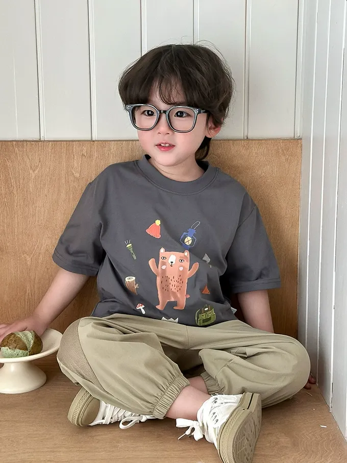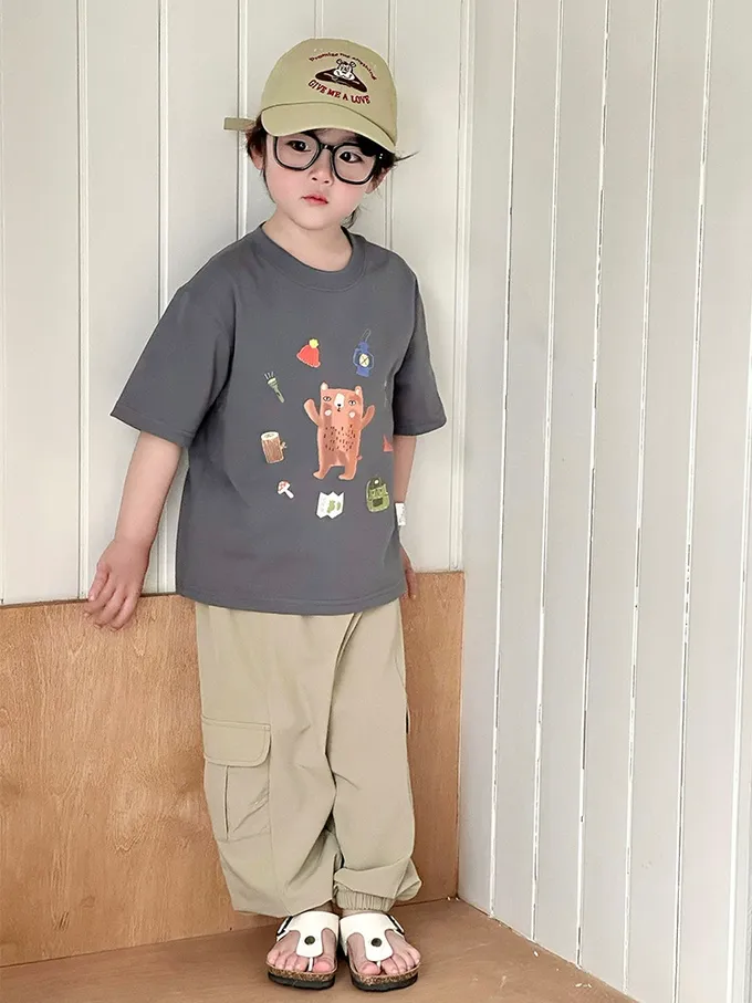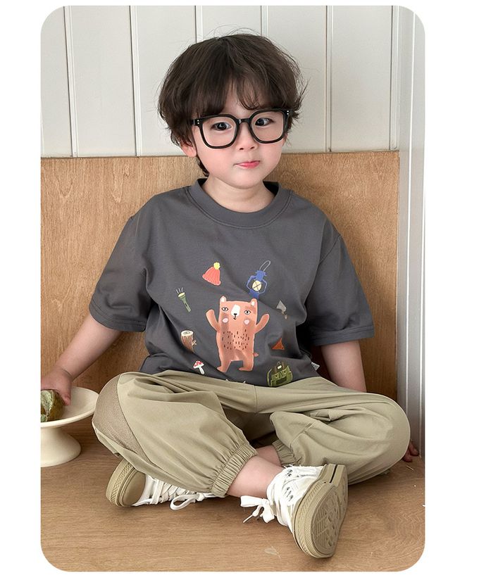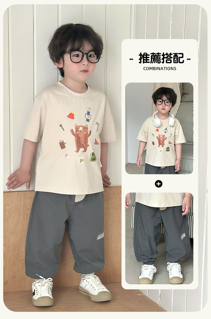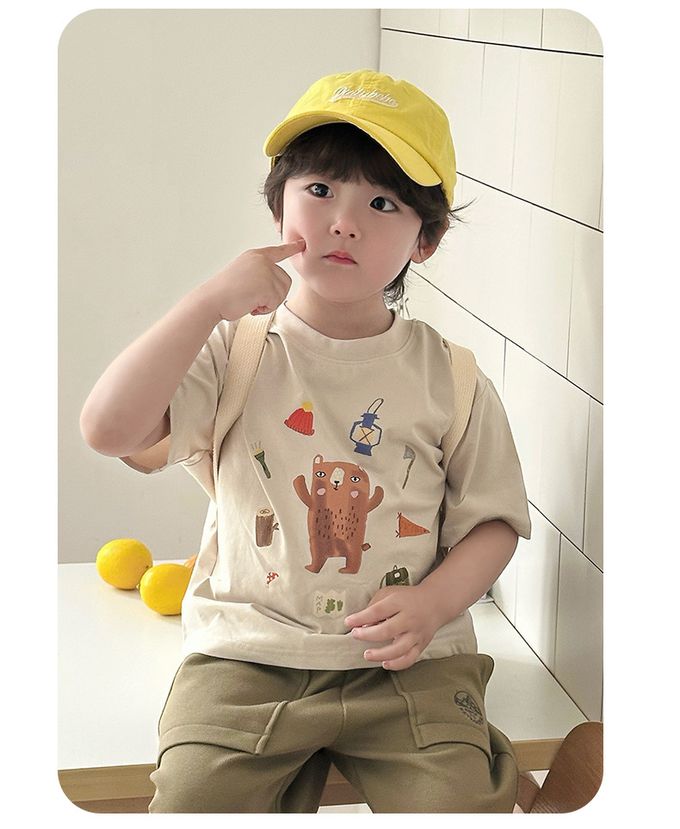 BOMI - 涼感吸濕透氣圓領短袖上衣-小狐狸郊遊-卡其