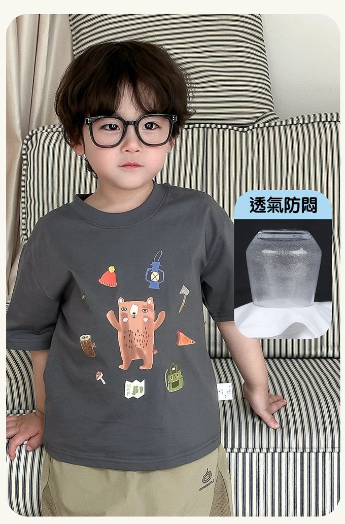 涼感吸濕透氣圓領短袖上衣-棕熊戶外遊-深灰
