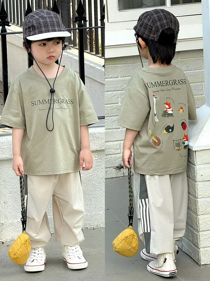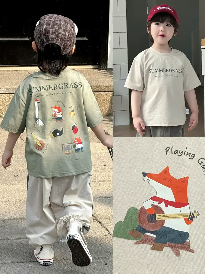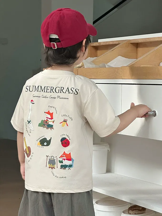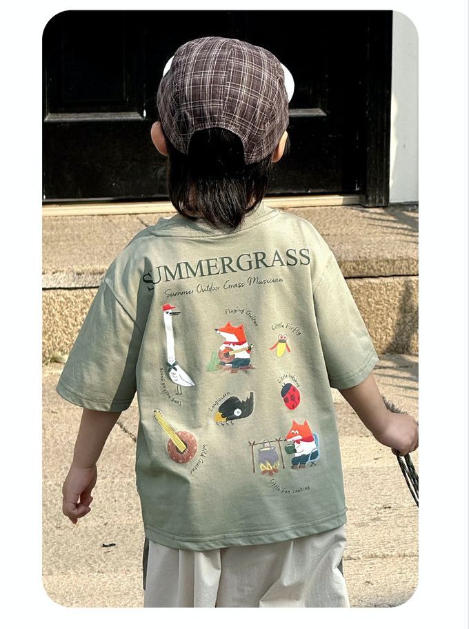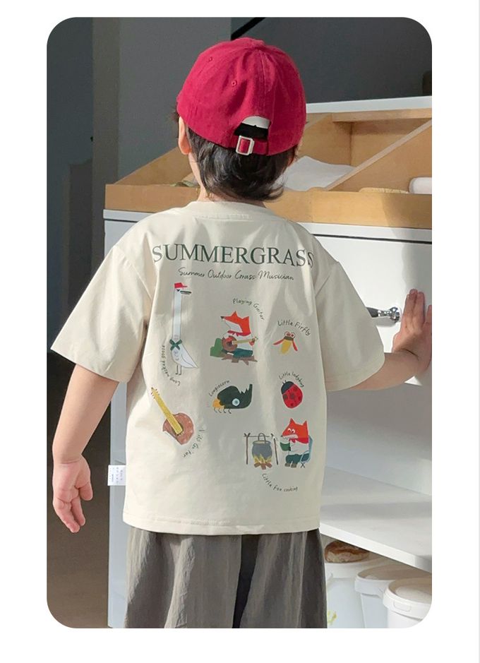 BOMI - 涼感吸濕透氣圓領短袖上衣-小狐狸郊遊-卡其