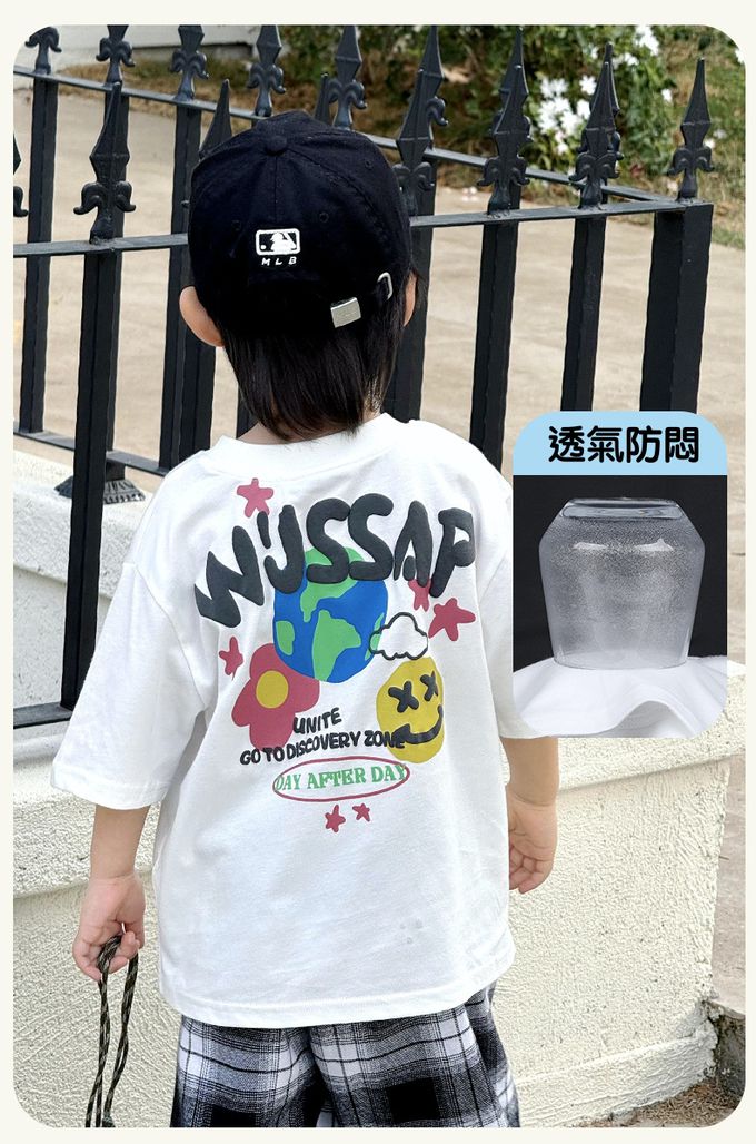 純棉圓領短袖上衣-地球字母-米白