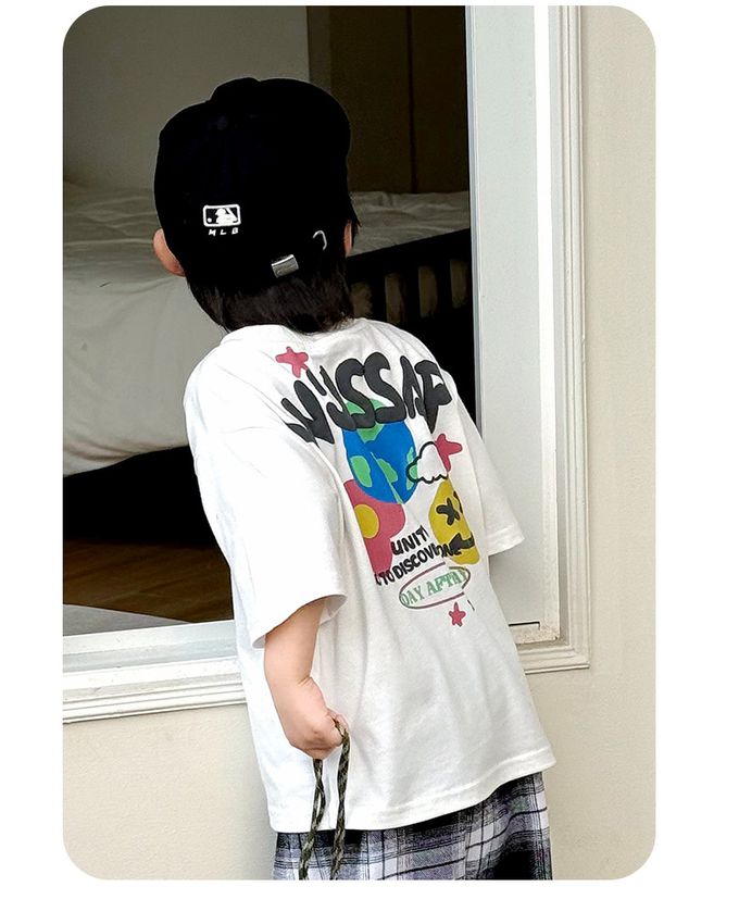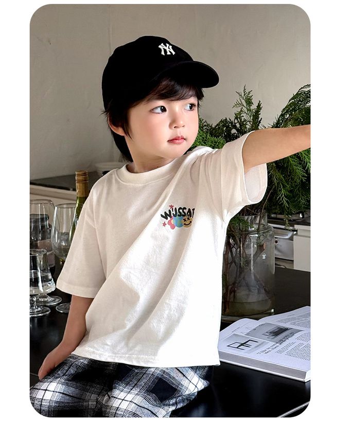BOMI - 純棉圓領短袖上衣-地球字母-米白