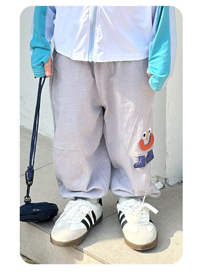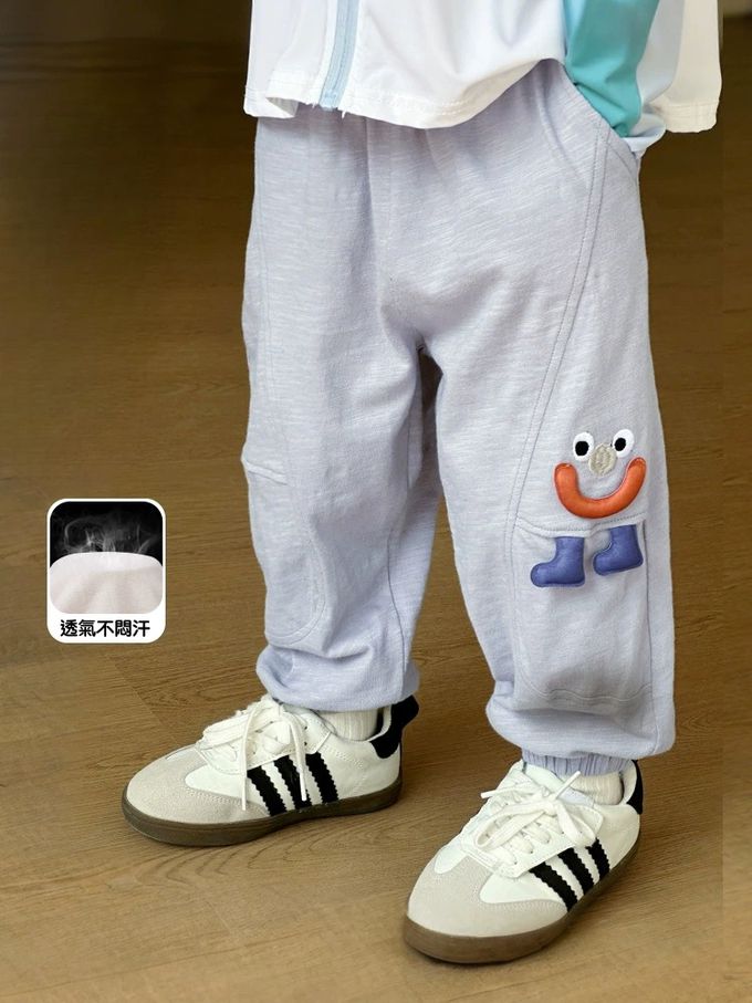 竹節棉輕薄透氣防蚊褲-香腸嘴小怪獸-淺灰