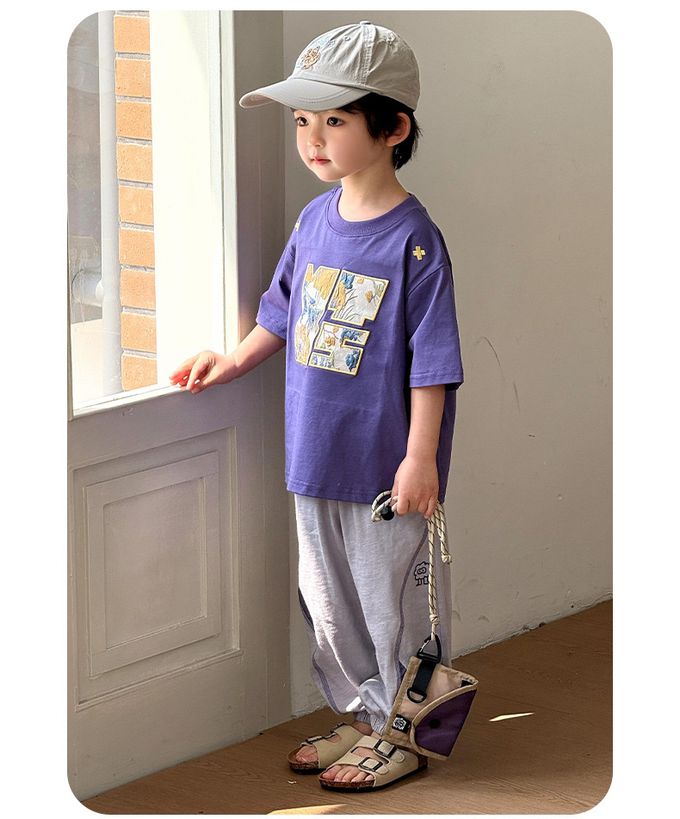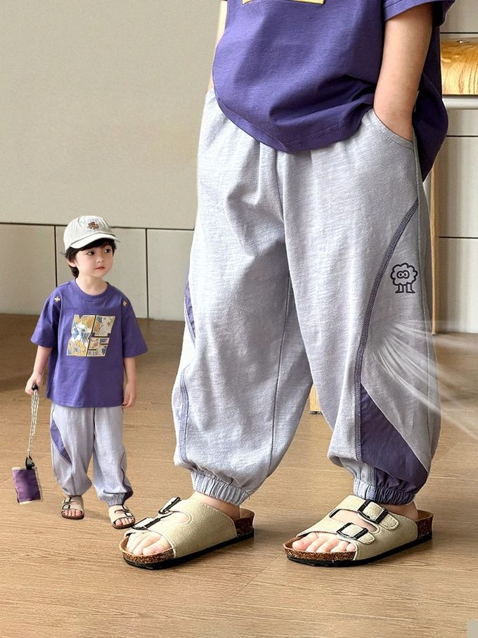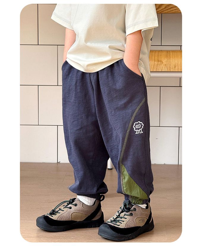 BOMI - 純棉輕薄透氣拼色防蚊褲-小毛球怪獸-淺灰