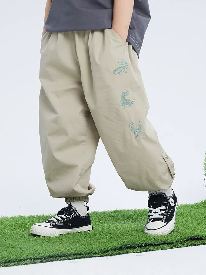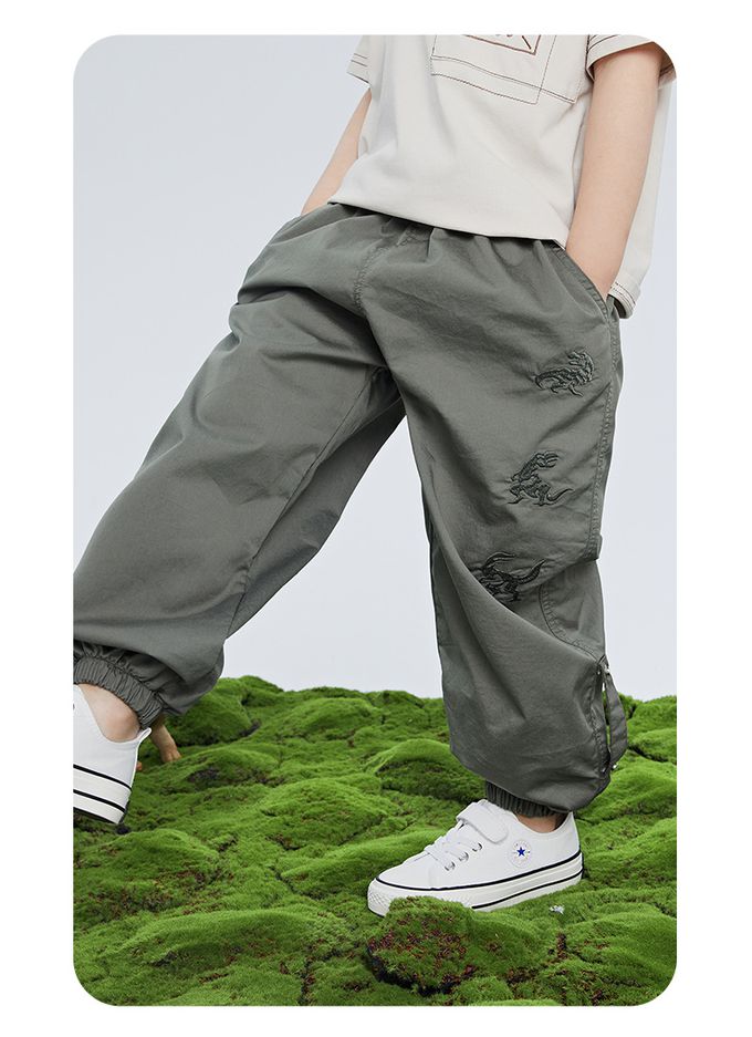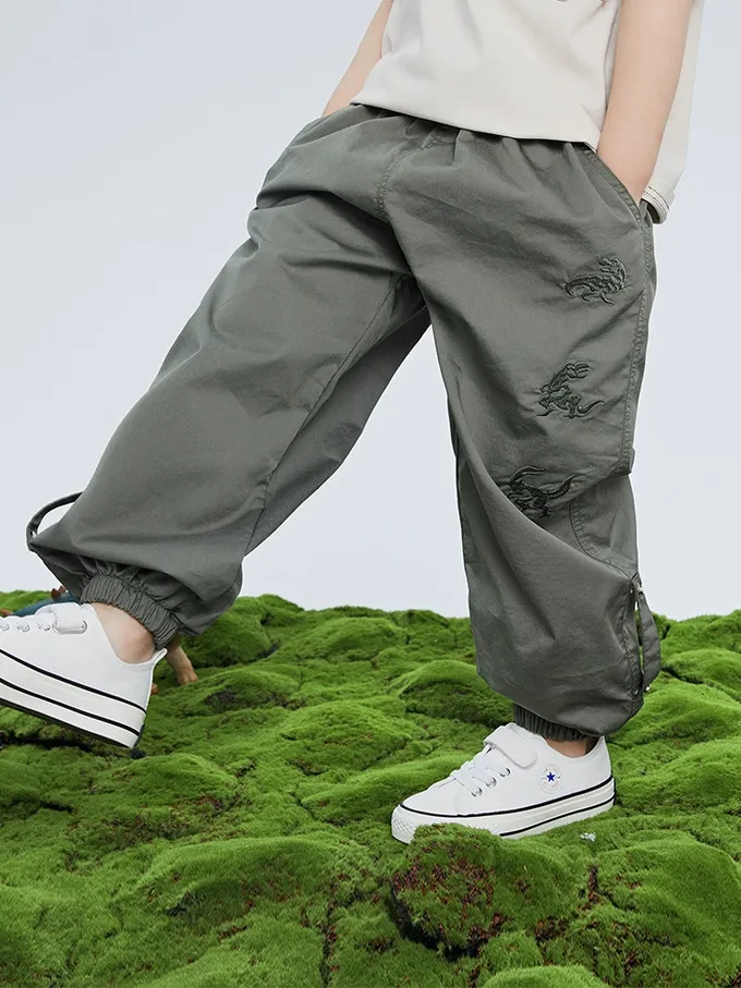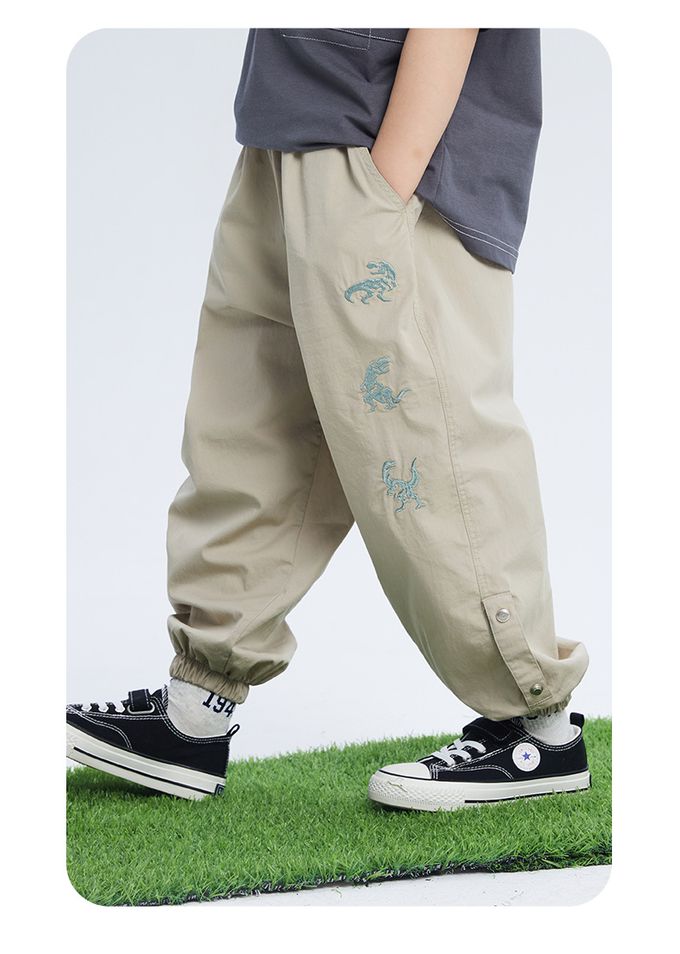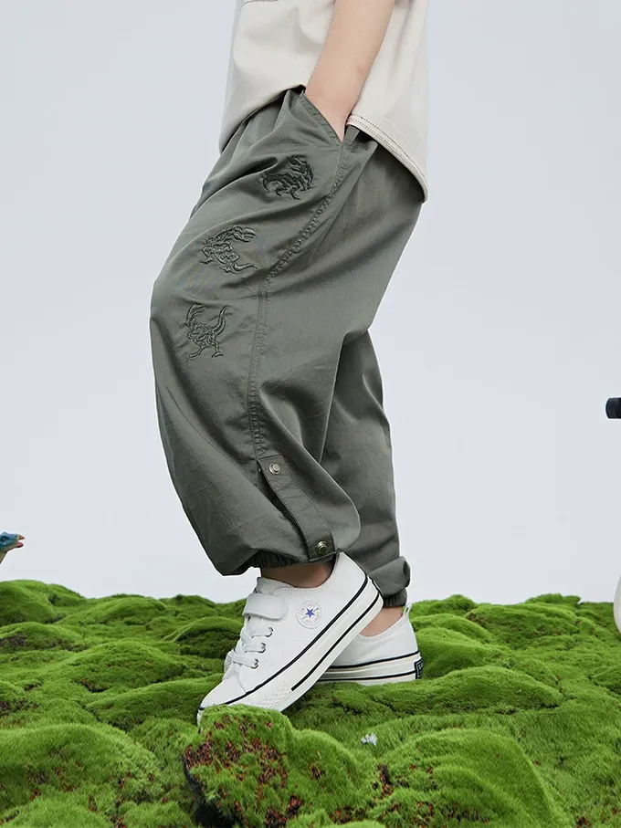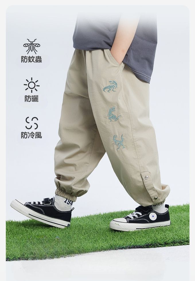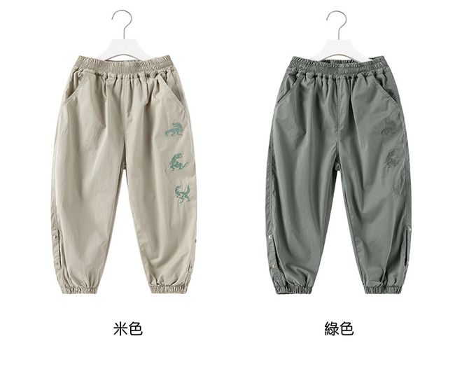 BOMI - 輕薄透氣休閒防蚊褲-恐龍刺繡-綠色