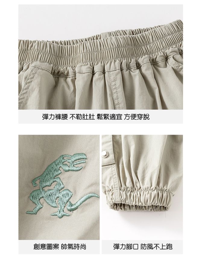 輕薄透氣休閒防蚊褲-恐龍刺繡-綠色