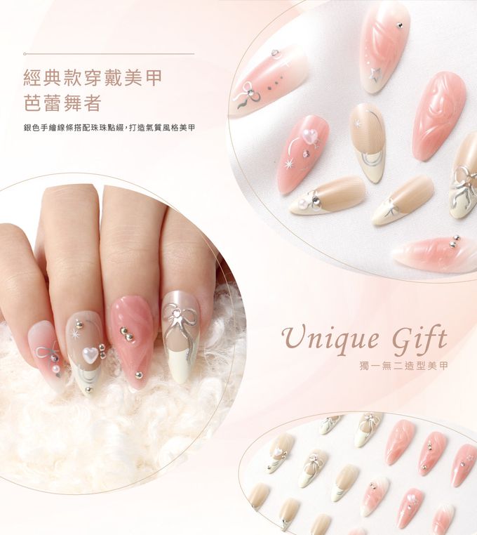 品名:經典款穿戴指甲美甲 芭蕾舞者美甲貼-粉色立體珍珠愛心貼鑽