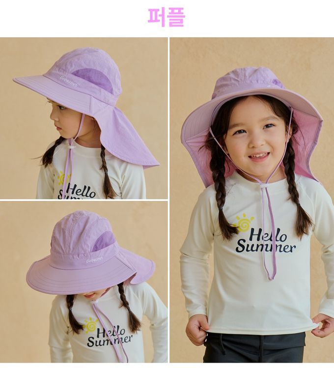 韓國 Bebechat - UPF 50+抗UV水陸兩用防曬遮脖帽/戲水帽-紫