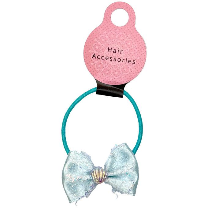 髮圈-貝殼緞面蝴蝶結-淺藍色