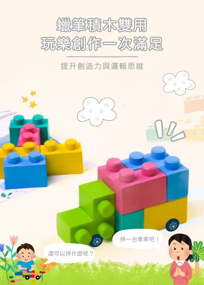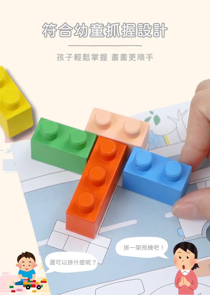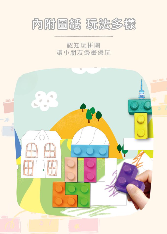 積木造型蠟筆,可拼可畫,創作樂趣加倍
