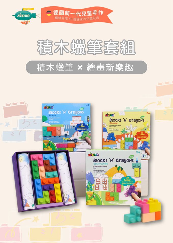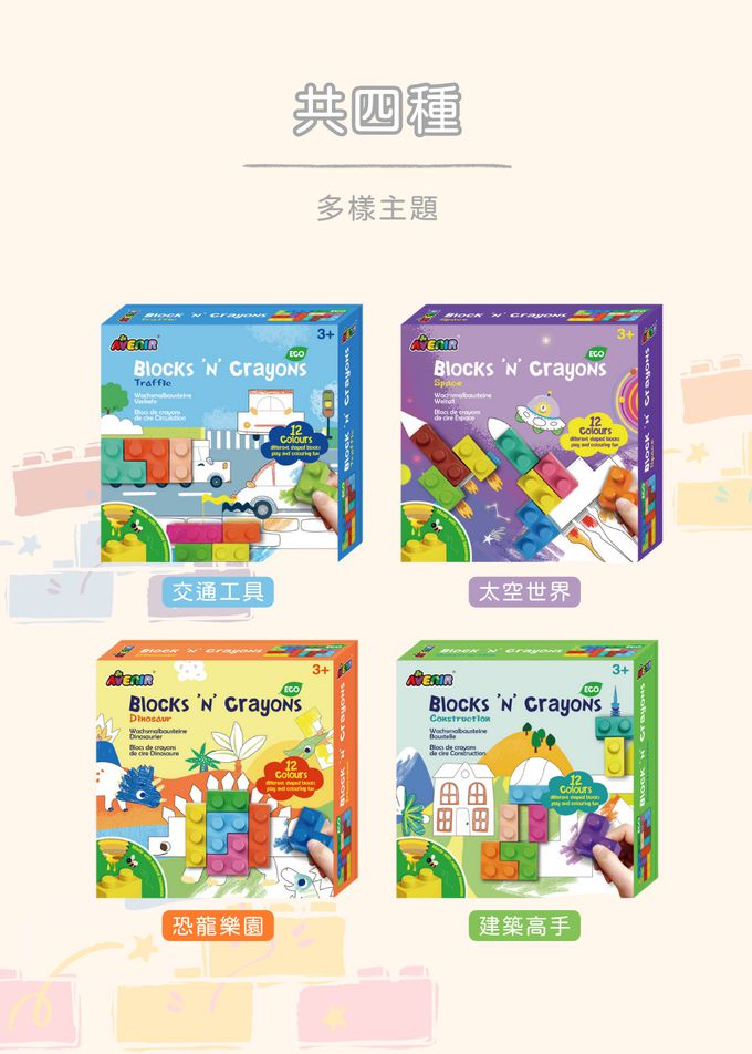 積木蠟筆套組 (全系列四款)-交通工具、太空世界、建築高手、恐龍樂園