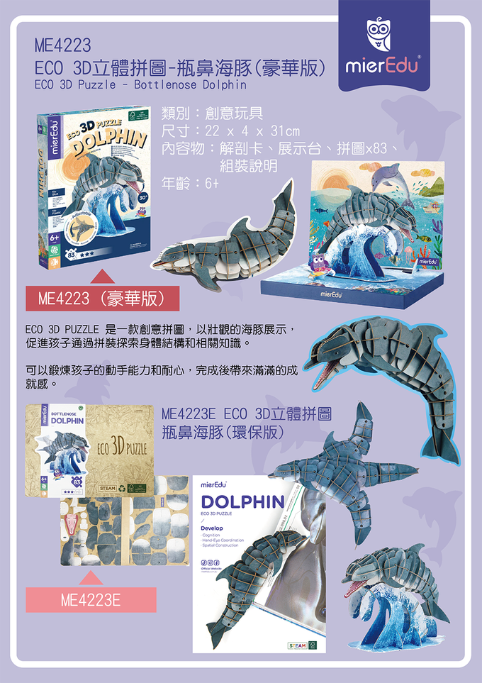 品名:ECO 3D立體拼圖-瓶鼻海豚(豪華版) ME4223