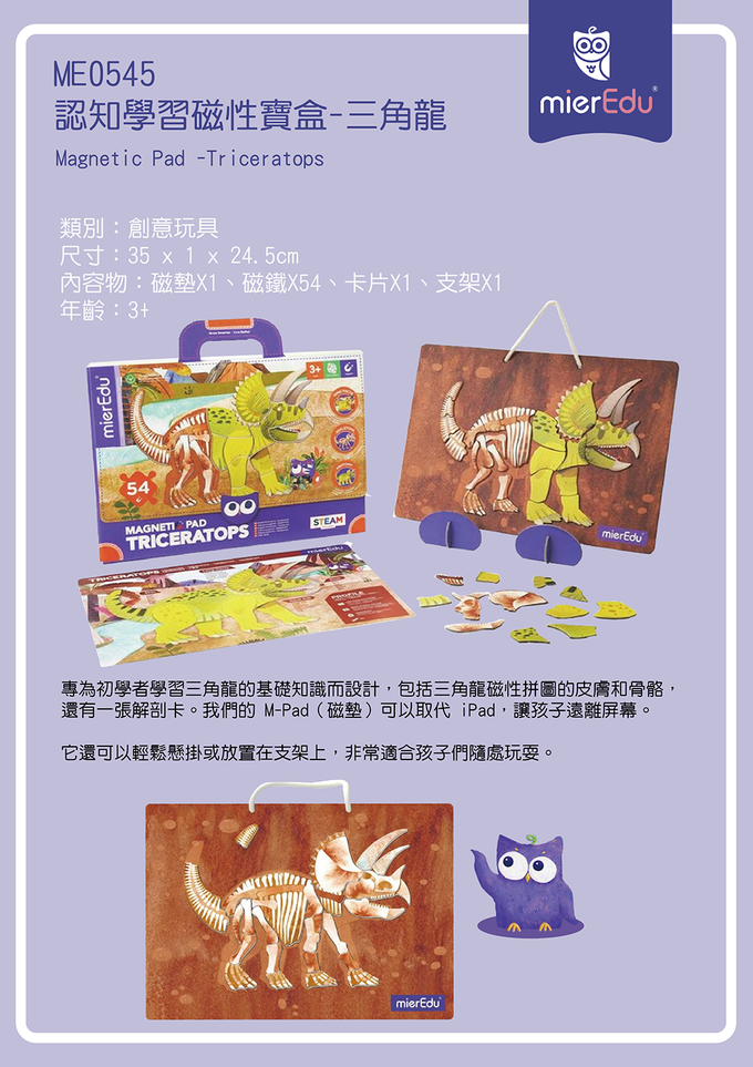 品名:認知學習磁性寶盒-三角龍 ME0545