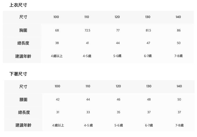 1. 尺寸表單位皆為公分(cm),實際尺寸會因布料彈性、水洗、測量起迄點等因素略有誤差。