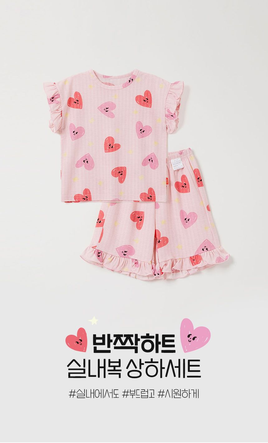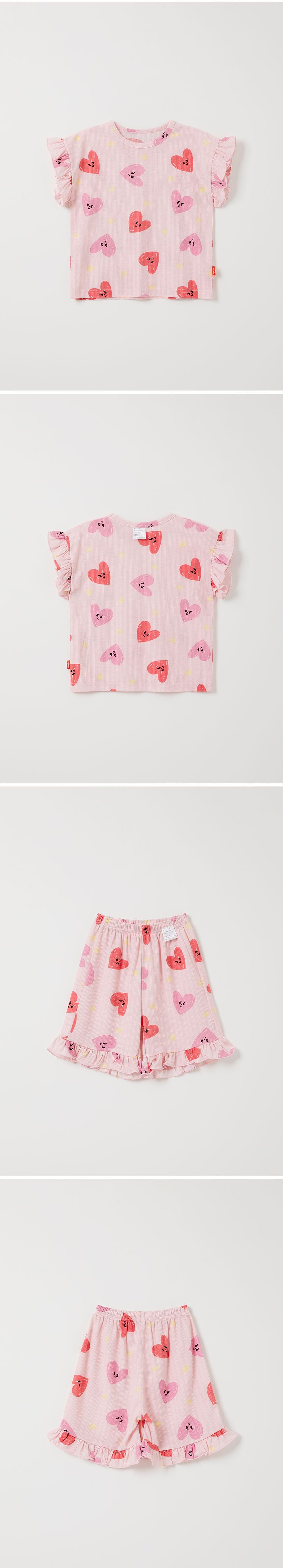 韓國 OZKIZ - 舒柔嫘縈羅紋短袖家居服-星星愛心-粉