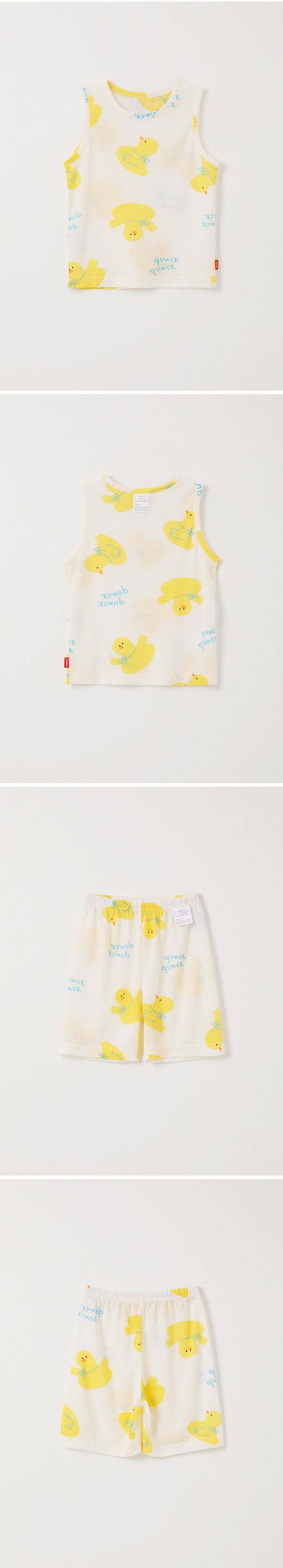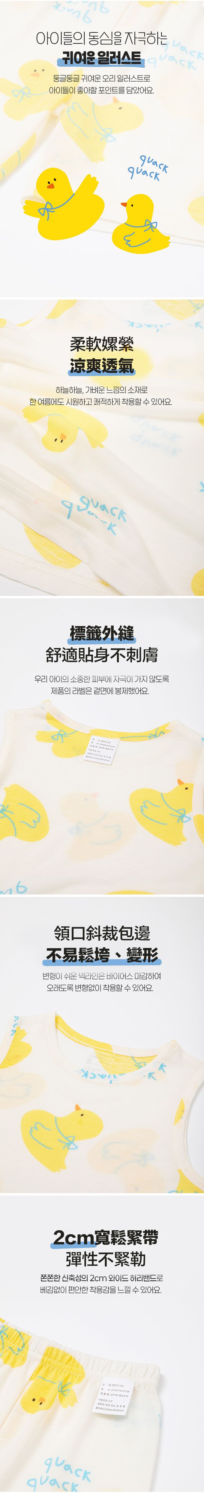韓國 OZKIZ - 透氣嫘縈無袖家居服-快樂黃鴨-米