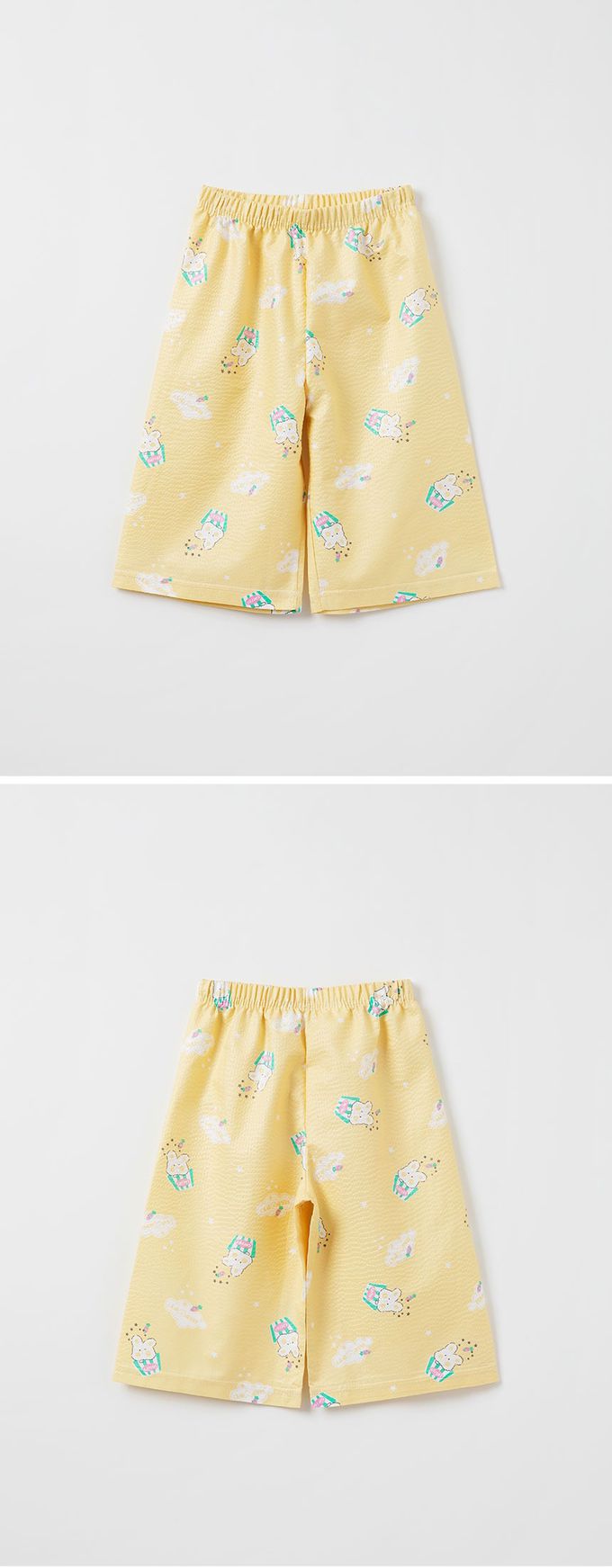 韓國 OZKIZ - 鬆緊腰輕便透氣七分家居褲-爆米花兔-黃