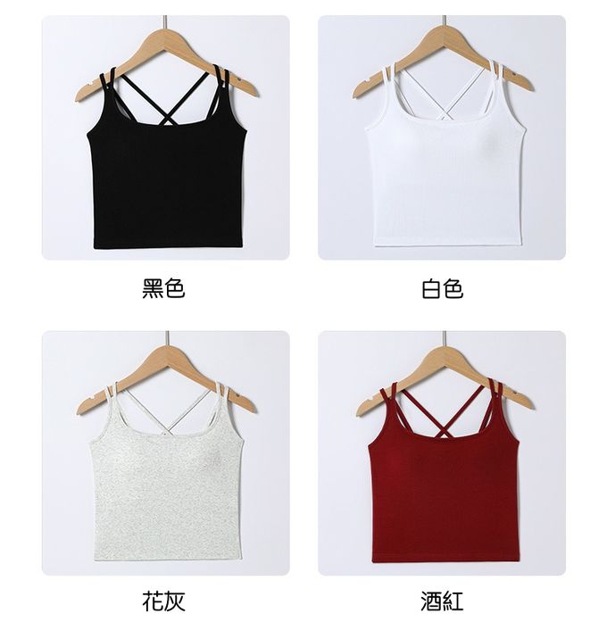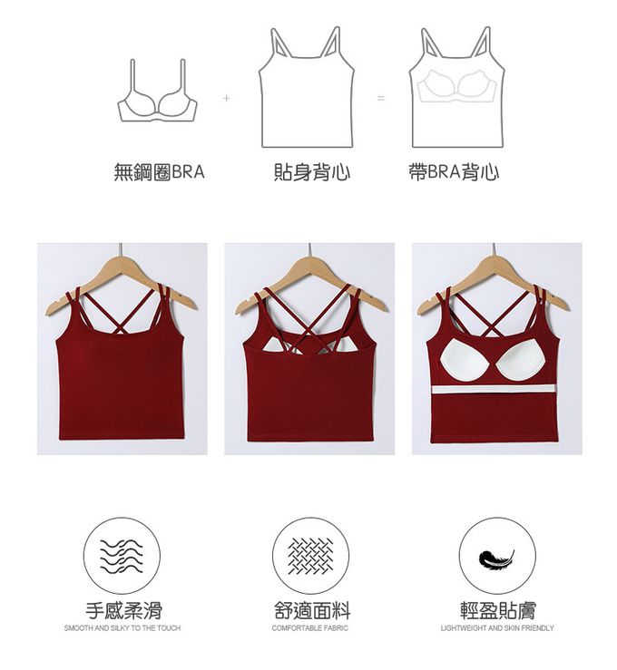 品名:雙肩帶交叉美背BRA TOP/附罩杯上衣