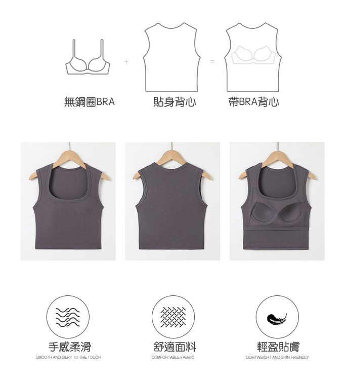 品名:百搭南瓜領中短版BRA TOP/附罩杯上衣